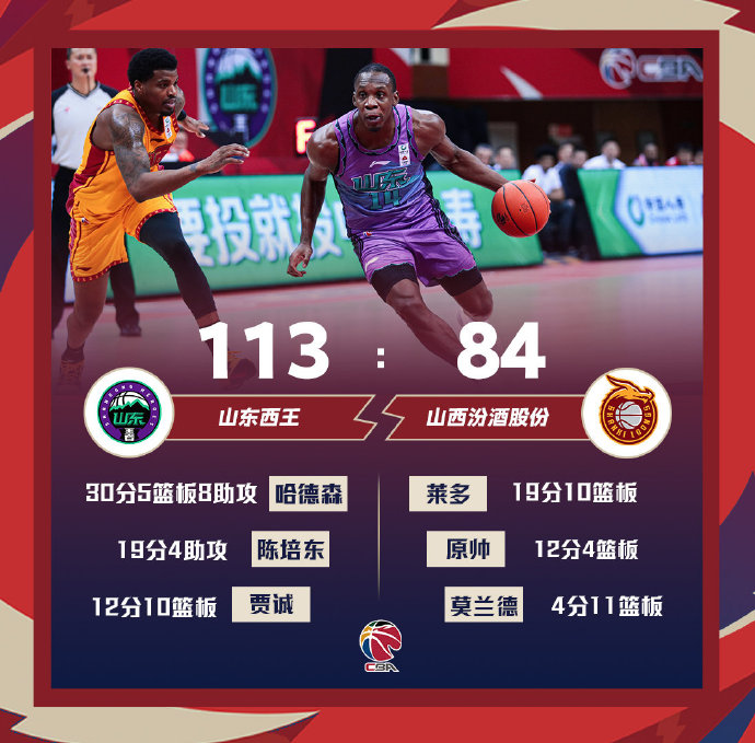 山东113-84大胜山西 哈德森30+8+5 莱多19+9