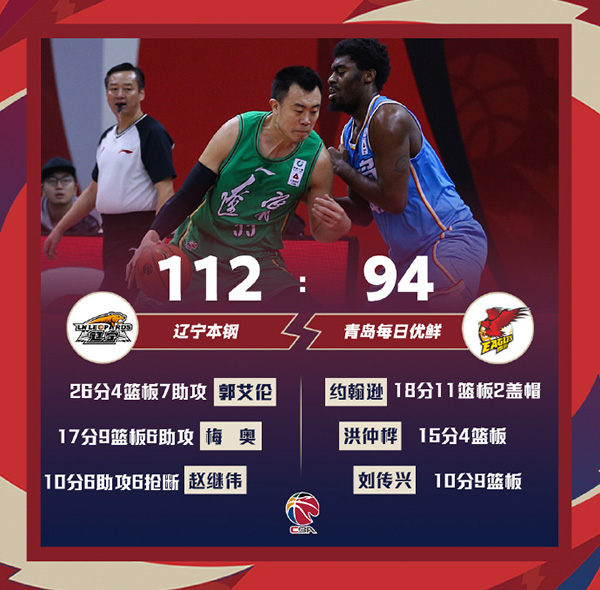 辽宁112-94击败青岛 郭艾伦26+7 梅奥17+9