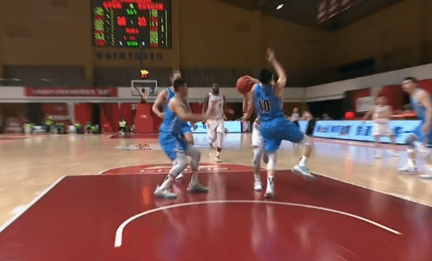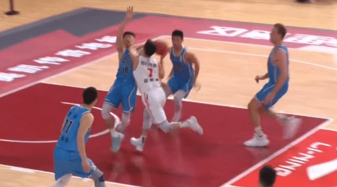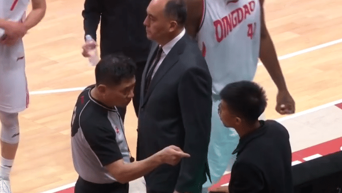 比赛进行第二节还剩下5分49秒的时候,杨金蒙欧洲步时肘撞到了刘晓宇的面部,刘晓宇倒地不起,他的鼻子也流血了。随后裁判去到场边看回放,同时青岛男篮的替补席工作人员随意离席抱怨,被警告了一次。