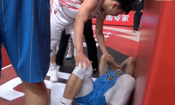 CBA裁判引争议!首钢悍将被对手肘击面部,鼻子流血+痛苦倒地