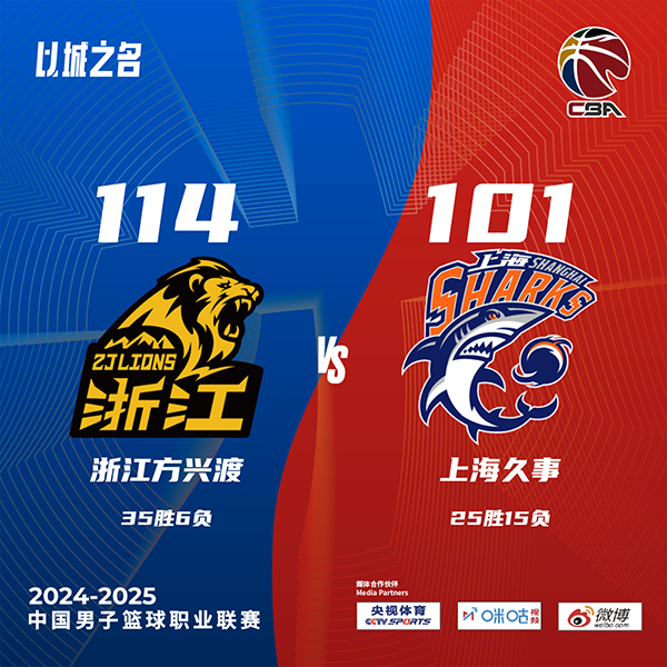 来源:直播车03-18 08:35 直播车讯:北京时间3月17日晚,2024-25赛季CBA常规赛继续第41轮角逐。坐镇主场的浙江广厦男篮经过四节较量以114-101战胜上海男篮,取得4连胜并报了10天前告负一箭之仇。