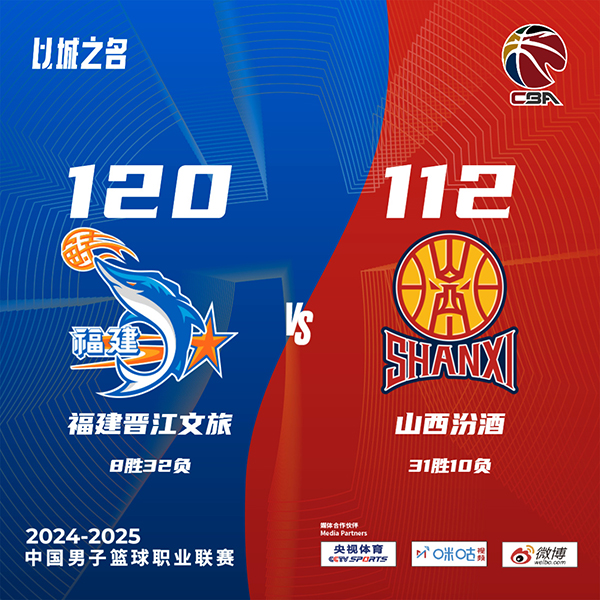 末节,比赛进入胶着状态,双方势均力敌,争夺异常激烈。在这一节,福建晋江文旅的黎伊扬表现稳健,贡献11分,其中包括1记三分球。与此同时,山西汾酒的布兰登·古德温也不甘示弱,拿下13分,包含1记三分球。最终,福建晋江文旅以120-112险胜,赢得比赛。