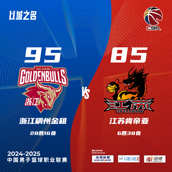 浙江95-85击败江苏 约克26+7+8 琼斯19+15 古德温31+6+5