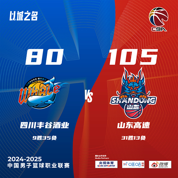 末节,四川丰谷酒业积极寻求缩小劣势,将比分追至66-76,但山东高速迅速做出回应,展开一波进攻将领先优势扩大至29分。尽管四川丰谷酒业在后段奋起直追,山东高速的克里斯特·库马杰表现出色,贡献10分,最终以105-80赢得比赛。