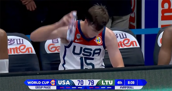 湖人新星怒摔水瓶泄愤!赛后回应被吐舌挑衅 美国首败再暴露冲冠软肋