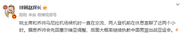 中国男篮就地解散!乔帅和姚明候机交流近2小时 男篮成员陆续回国