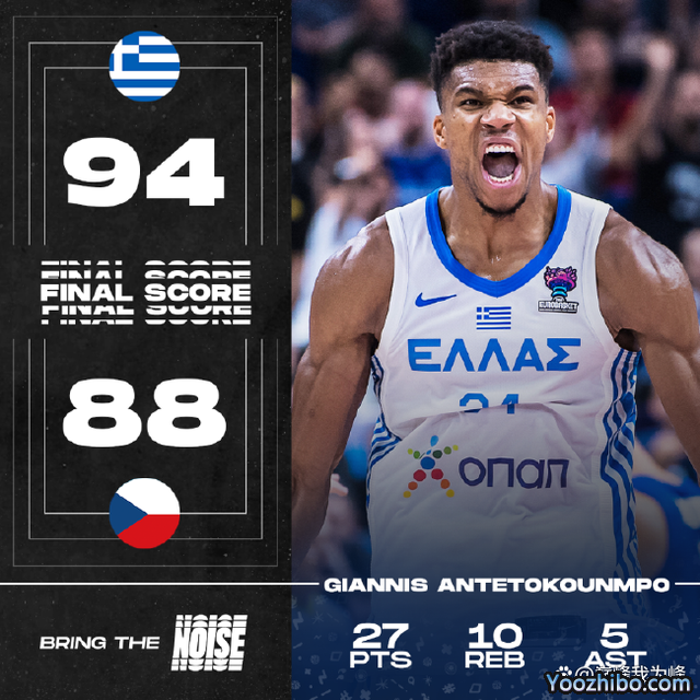 直播车讯:北京时间9月12日凌晨,男篮欧锦赛16进8的比赛,希腊队迎战捷克队,希腊队首节一度领先10分,捷克队追平,双方此后拉锯,第四节希腊队在字母哥带领下再次建立10分优势,最终希腊队94-88战胜了捷克队,晋级八强。