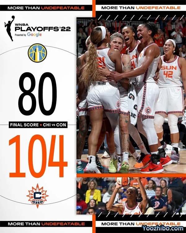 直播车讯 北京时间9月7日讯 WNBA季后赛半决赛G4,康涅狄格太阳以108-80大胜卫冕冠军芝加哥天空,将大比分扳成2-2,双方将进入抢五决胜。