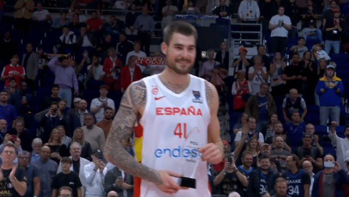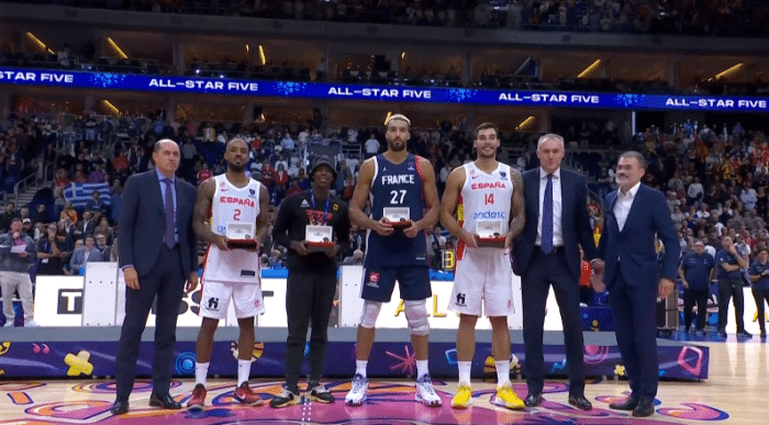 威利-埃尔南戈麦斯场均拿到17.2分6.9篮板1助攻,凭借出色的表现入选最佳阵容,带队夺得冠军并且夺得MVP;胡安则是夺得决赛MVP;威利获MVP时,胡安为兄弟鼓掌庆祝,喜极而泣太开心,埃尔南戈麦斯兄弟成今年欧洲杯大赢家。