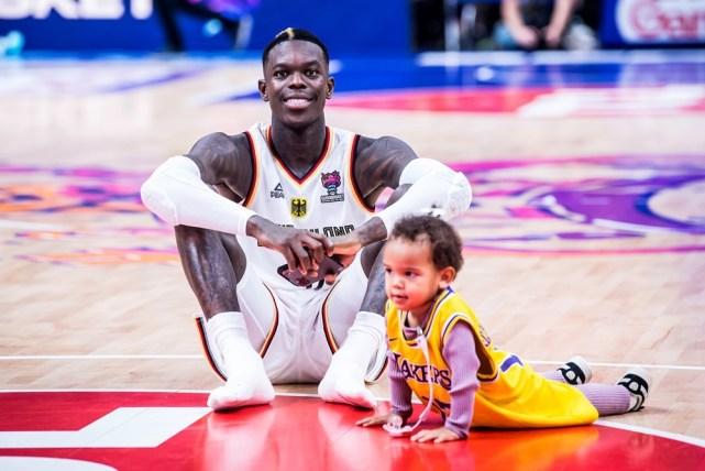 施罗德虽然也被驱逐,但德国男篮晋级四强,赛后他开心地坐在地板上,身边是穿着湖人17号球衣的儿子。施罗德目前还是自由球员,此前有报道称他有兴趣重返湖人打球,儿子身上的17号球衣或许也在暗示他的心声。