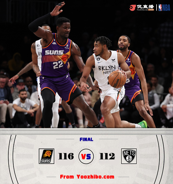 直播车2月8日讯 NBA常规赛继续进行,篮网主场迎战太阳,篮网刚刚交易走欧文,迎来丁威迪和芬尼-史密斯,但本场教练决定两人不上场,渡边雄太和小库里也不打,但西蒙斯缺席5场后复出;而因腹股沟伤势缺席21场的布克本场也终于迎来复出。上半场属于布克和托马斯的对攻战,布克复出状态十分不错,里突外投连续得分,而艾顿次节也是连续吃饼单节得分上双,而篮网进攻端主要靠托马斯撑起,他继续延续火热状态半场再砍下24分,双方比分始终拉不开,太阳得分点更多取得微弱领先。下半场,布里奇斯找到手感里突外投连砍8分帮助太阳拉开双位数分差,但托马斯马上带领篮网回应一波12-0攻击波,随后双方展开拉锯战,太阳依靠替补不错发挥再次拉开双位数领先,但篮网连续外线发炮再次10-0咬住比分,关键时刻布克两罚全不中,但“点球”大战篮网没有暂停非常致命,艾顿两罚全中杀死比赛,最终太阳险胜篮网,取得3连胜。