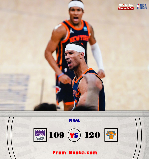 直播车4月5日讯 NBA常规赛,尼克斯今日迎战国王,前者近来情况不佳遭遇三连败,后者则是取得两连胜,此役蒙克和阿努诺比缺战。比赛上来,两队短暂拉锯后国王一波小高潮将分差拉开到了两位数,整个第一节尼克斯只拿到20分,次节国王迅速将分差扩大到二十分以上,但之后他们的命中率急剧下滑,尼克斯在布伦森的带领下打出一波16-2的攻势,半场结束时国王领先8分;下半场回来,尼克斯继续发起反扑,迪文岑佐节末外线连续出手成功帮助球队实现反超,末节双方一直保持拉锯,但随后哈特和布伦森联手打出一波13-0的攻势拉开分差,最终尼克斯21分逆转国王结束三连败。