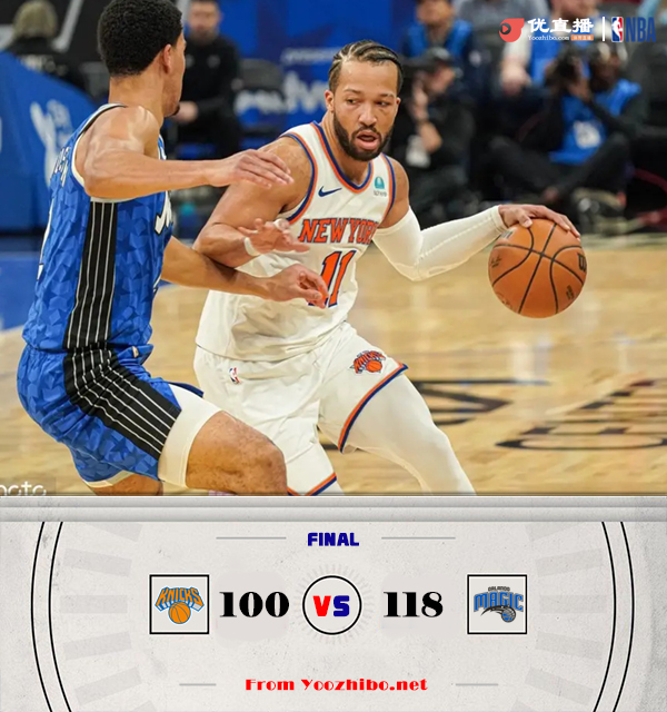 直播车2月15日讯 NBA常规赛,魔术主场迎战尼克斯。魔术东部第八,尼克斯东部第四,但已遭遇3连败。一开场,布伦森火力全开,单节11投7中砍下20分帮助球队占据场上主动,第二节魔术展开反击,班凯罗内外开花连续拿分带队反超,尼克斯命中率下降,半场战罢65-55获得10分优势。下半场,双方围绕两位数的分差展开激烈争夺,末节魔术打出10-2一举将分差扩大到20分,尼克斯苦苦追赶无果,最终,魔术118-100击败尼克斯,送给对手4连败。
