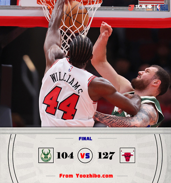 直播车10月12日讯 NBA季前赛,公牛对阵雄鹿。公牛这边武切维奇率领轮换阵容,雄鹿则是尽遣替补。一开场,前半段雄鹿稍稍占优,公牛一波14-3领先7分结束首节。次节上来,双方大打对攻,分差始终紧咬,半场战罢公牛61-59领先2分。易边再战,公牛持续发力取得两位数领先,雄鹿努力追赶,三节打完公牛89-79领先10分。第四节,公牛牢牢占据主动将分差拉开到20分以上,雄鹿无力回天。最终,公牛127-104大胜雄鹿。