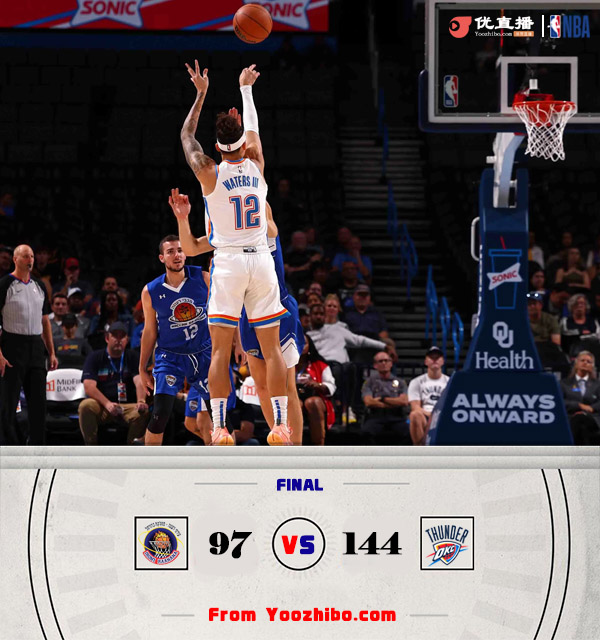 直播车10月10日讯 NBA季前赛,雷霆对阵马卡比拉阿纳纳。雷霆本赛季继续培养新人,本场比赛亚历山大、基迪均不会出战。一开场,双方难分伯仲,比分始终紧咬,雷霆连续命中三分带着4分优势结束首节。次节上来,雷霆持续外线开火,辛格斯突然发力独得16分,但雷霆持续发力多点开花,半场战罢以71-54领先17分。易边再战,雷霆牢牢占据场上主动,一波10-0将分差拉开到30分以上。马卡比无力招架,雷霆不断扩大优势,三节打完雷霆领先42分。第四节,雷霆轮换阵容依旧占据主动,比赛早早失去悬念。最终,雷霆大胜马卡比。