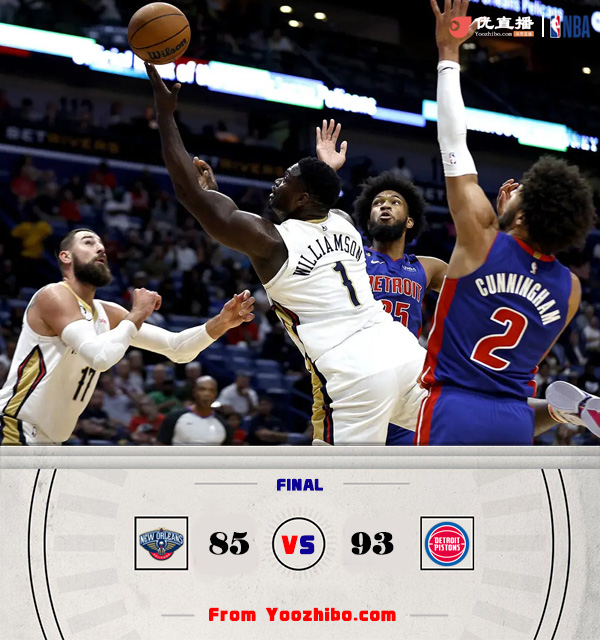 直播车10月8日讯 NBA季前赛继续进行,鹈鹕对阵活塞。鹈鹕迎回了更加精壮的锡安,新赛季值得期待。活塞这边休赛期引进多位实力派强援,康宁汉姆也得到了迅速成长。英格拉姆和麦科勒姆本场比赛不会出战。一开场,活塞率先发力连续打出进攻高潮取得领先,鹈鹕回敬10-0的攻势在首节结束时反超1分。次节上来,两队大打对攻,鹈鹕持续发力内外开花,以59-51领先进入下半场。易边再战,锡安连得6分带队取得两位数优势,活塞奋力反击连中三分一度追赶,鹈鹕一波6-0带着6分优势结束第三节。最后一节,双方继续缠斗,鹈鹕始终保持微弱领先,康宁汉姆得分助攻一肩挑带队追赶,西布龙关键上篮得手,最终,鹈鹕险胜活塞,取得胜利。
