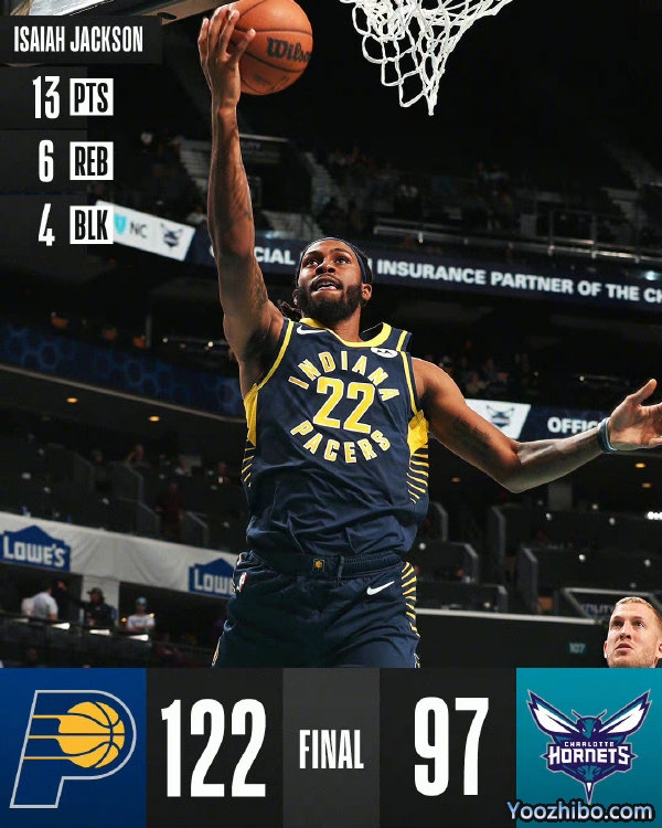 步行者:内史密斯16分4篮板,马瑟林15分,以赛亚-杰克逊13分6篮板,特纳12分3篮板3助攻2封盖,杜阿尔特12分6篮板2助攻,希尔德7分5篮板2助攻3抢断,杰伦-史密斯9分10篮板,哈利伯顿5分2篮板6助攻,泰勒4分2篮板,肯德尔-布朗2分2篮板2助攻,麦康纳6分4篮板6助攻,詹姆斯-约翰逊4分2篮板,内姆哈德8分2篮板3助攻,布里塞特6分3篮板,加洛韦3分。