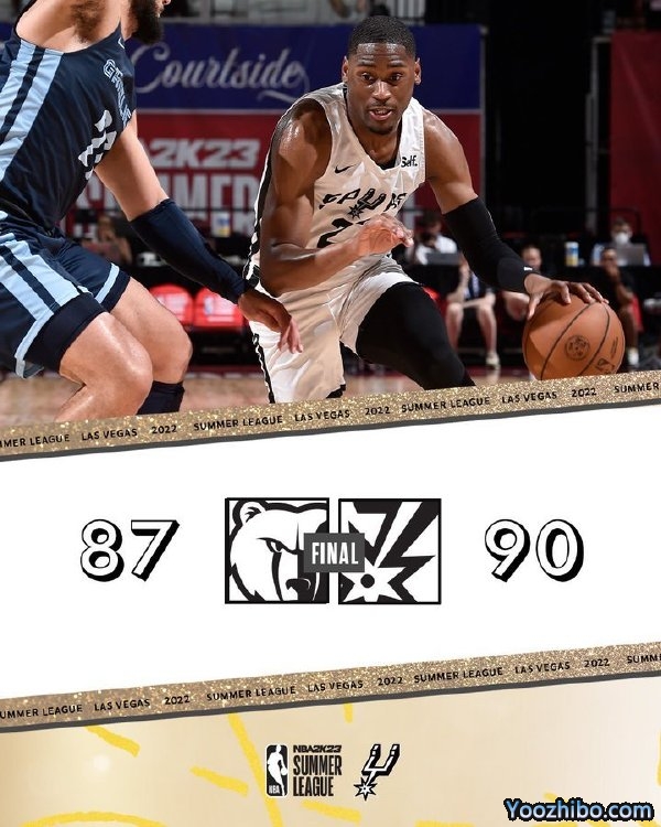 直播车讯7月17日讯 拉斯维加斯夏季联赛今日继续开打,马刺和灰熊迎来一场交手。上半场争夺两支球队状态相当,虽然首节灰熊率先一波10-0的攻势发动进攻,但马刺很快做出回应迅速追赶上来,不过马刺虽然能咬住比分且多次追平比分,但始终无法反超导致局面稍显被动,最后时刻豪尔和韦斯利的三分进球帮助马刺抹平比分进入下半场。下半场马刺抢占先机在第三节取得久违的领先,而灰熊开局糟糕的表现也直接导致落后9分进入第四节;不过第四节的灰熊迅速组织反击,本场状态出色的“小胖”洛夫顿开场连拿9分,灰熊用一波14-2的进攻高潮一举夺回主动权,不过面对末节独砍15分险些带队翻盘的洛夫顿,马刺这边也有自己的超级英雄,布兰汉姆末段轰进4记三分砍下14分带队反超并守住胜利。最终,马刺惊险击败灰熊结束4连败并迎来夏季联赛首胜。