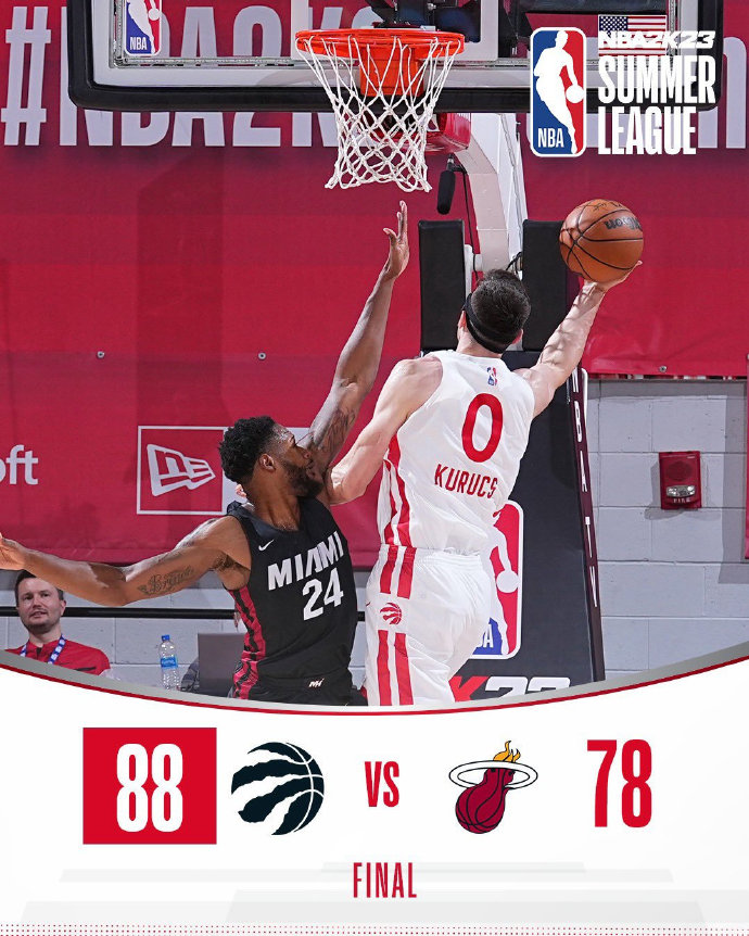 直播车讯7月16日讯 NBA拉斯维加斯夏季联赛继续进行,热火对阵猛龙,热火的约维奇和罗宾逊,猛龙的科洛克都值得人们关注一下。开局双方虽然命中率不高,但比分一直很胶着,热火抓住机会建立领先,但猛龙马上回应小高潮反超了2分,次节热火陷入得分荒,布鲁克斯外线手感火热接连扔进三分帮助猛龙直接拉开双位数分差。第三节,热火进攻端还是找不到状态,单节只得到14分,猛龙越打越好将分差拉开至20分以上,末节风云突变,热火终于找回手感,接连打出小高潮一度追到差5分,但猛龙及时止血稳住优势,最终猛龙力克热火。