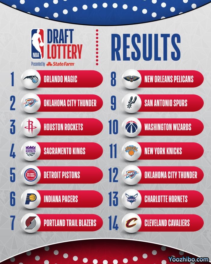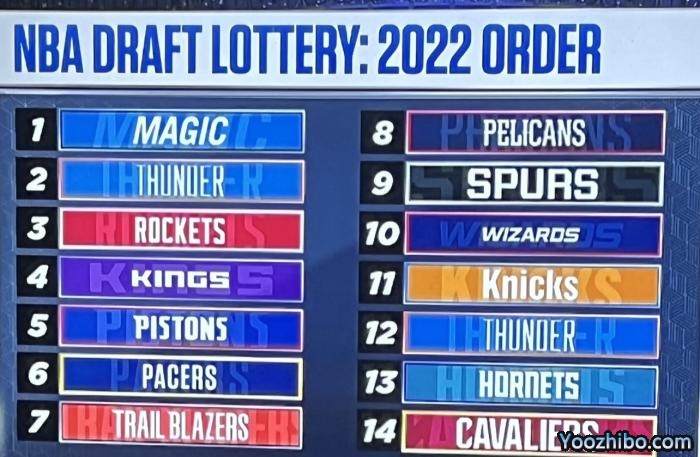 直播车讯 北京时间5月18日讯 2022年NBA选秀抽签仪式今日进行,根据常规赛战绩,火箭、魔术和活塞、雷霆(本身12.5%+快船签1.5%)均有14%的概率抽中状元签,步行者(10.5%)也有超过10%的概率。其中魔术抽中状元签,雷霆抽中榜眼签,火箭抽中探花签,湖人的8号签最终归属鹈鹕。最终,魔术喜获状元签!雷霆获得榜眼、火箭获得探花、国王第四。