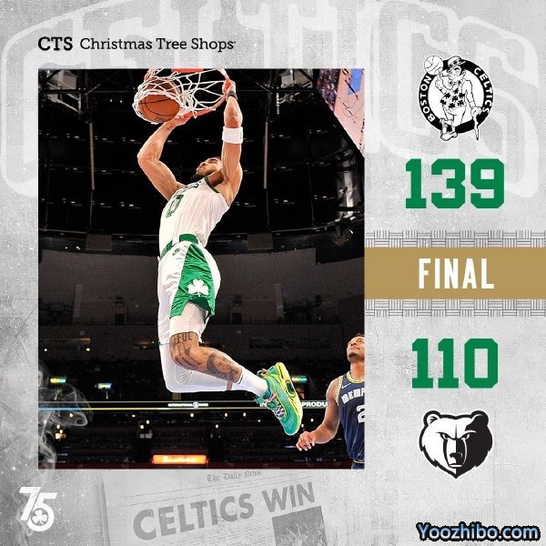 直播车 4月11日讯 NBA常规赛迎来收官之战,灰熊主场迎战凯尔特人,灰熊目前56胜25负已经确定名列联盟次席,而凯尔特人本场取胜则排在东部第3位,灰熊多名主力本场轮休。开局绿军迅速进入状态建立主动权,但残阵灰熊众将也通过外线三分给出回应并咬住比分,绿军依靠内线优势还是领先到7分,次节灰熊持续追分,但绿军依靠不错的手感回应小高潮稳住优势,节末塔图姆找到外线手感连中三元将分差直接拉开至20分以上。第三节,双方持续展开拉锯战,绿军众将都能给出回应,替补也是发挥出色持续取分,三节结束绿军依然领先25分,末节绿军直接换上替补中的替补练兵,上来就一波小高潮直接拉开至30分以上分差,随后双方你来我往,绿军牢牢掌握住优势,最终绿军大胜残阵灰熊,常规赛圆满收官的同时锁定东部第2。