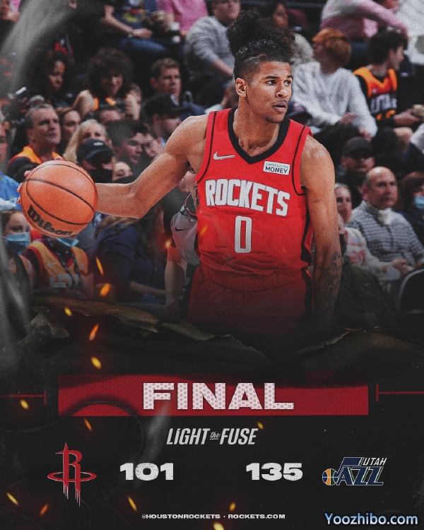 火箭(15-41):格林13分2助攻,泰特14分4篮板,伍德12分9篮板4助攻,波特8分4篮板8助攻,戈登14分4篮板,马丁16分,萨古9分3篮板2助攻,马修斯7分2篮板。