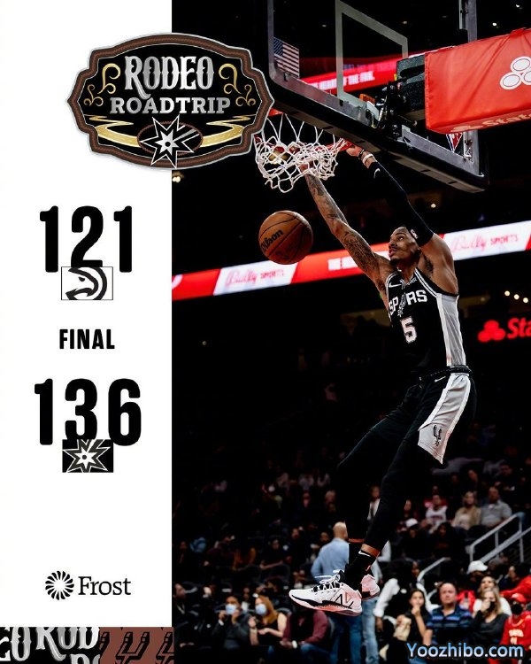 直播车2月12日讯 NBA常规赛继续进行,老鹰坐镇主场迎战马刺队,此役马刺新援理查德森等人缺阵。首节开战,马刺进攻端状态火热,全队本节外线手感出色,三分十投八中,也使球队很快建立了领先优势,节末老鹰连续两记三分稍稍迫近比分,马刺43-29领先结束第一节。次节上来,马刺外线机会变少,两队连续在内线做文章,老鹰逐渐缩小分差,一度只落后6分,但突然又陷入得分荒,马刺顺势打出8-0重新稳住局面,节末,马刺再接连命中三分,珀尔特尔超远压哨三分也中,马刺73-56保持领先结束上半场。易边再战,马刺前半节延续上半场进攻状态,逐渐拉大分差,一度领先至26分,但随后进攻突然断电,老鹰很快打出一波11-0迫近分差,节末穆雷连得四分稳住局面,三节结束马刺103-87领先。末节上来,两队交替取分,老鹰无法防住马刺的进攻迫近分差,随着约翰逊再连得五分,老鹰换上替补,马刺随后也换人,比赛进入垃圾时间,最终全场结束,马刺136-121客场大胜老鹰。