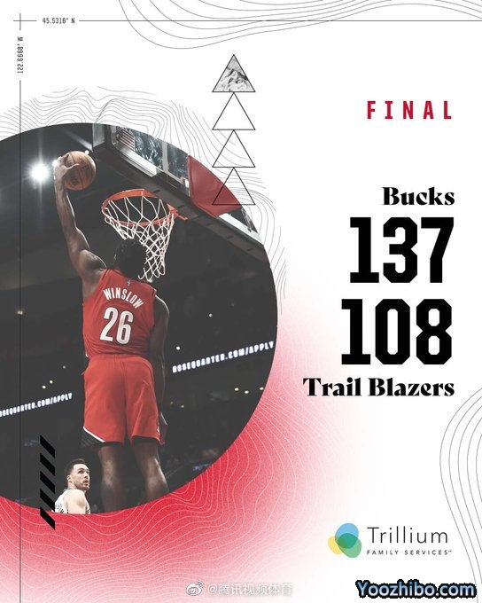 直播车2月6日讯 NBA常规赛,4连败的开拓者主场迎战雄鹿。首节雄鹿外线火力凶猛,字母哥、波蒂斯、迪文岑佐等人单节联手飚中七记三分,球队也用一波27-8的进攻狂潮取得18分的领先优势,好在麦克勒莫节末站出来连续砍分将分差缩小到个位数,次节开拓者靠着麦科勒姆和西蒙斯的得分一度紧咬比分,然而他们还是没能挡住对手无解的三分投射,半场结束时已然落后16分。第三节字母哥里突外投无所不能,波蒂斯也在外线连投连中,雄鹿再送一波12-0的攻势取得30分的优势就此终结比赛悬念,末节沦为两队练兵时间,雄鹿替补群持续高效输出稳稳收下比赛。最终,雄鹿全场飚中23记三分,客场以137-108大胜开拓者,送给对手5连败。