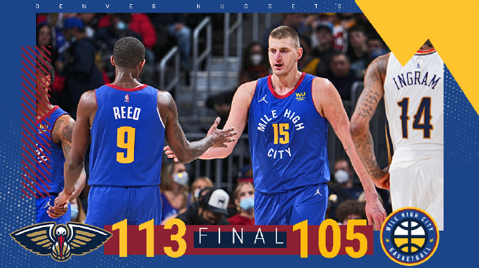 直播车2月5日讯 NBA常规赛掘金对阵鹈鹕,掘金近来遭遇2连败,戈登因为腿筋不适缺阵。开场后约基奇上来连得7分展现不错状态,但鹈鹕多点开花紧咬比分,两队连续在外线对飙三分,首节掘金领先2分。第二节掘金外线依旧手感火热不断命中三分,英格拉姆站出来带领球队紧咬比分,上半场掘金52-51领先鹈鹕。下半场回来场上比分仍旧胶着,约基奇再次展现进攻欲望接连拿分,不过瓦兰和英格拉姆两人轮番砍分帮助鹈鹕仍旧紧咬比分,三节过后两队打成平手。第四节两队仍旧打得一片火热,第四节后半段鹈鹕通过提速抓反击取得领先,其中琼斯表现优异,虽然掘金通过三分续命,但又是琼斯最后连续制造杀伤帮助鹈鹕守住胜果,他末节6中6独得18分,最终鹈鹕113-105送掘金3连败。