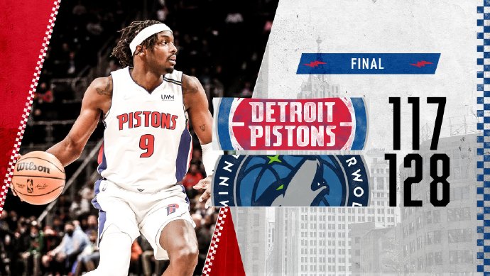 直播车2月4日讯 NBA常规赛活塞对阵森林狼,本场比赛康宁汉姆缺阵。开场后森林狼首先打出一波攻势取得领先,活塞通过外线一阵三分雨逐渐追上比分,并且依靠贝的压哨补篮领先结束第一节。第二节回来仍旧是森林狼率先发力打出攻势,但此后他们盲目追求三分但命中率并不高,活塞在格兰特的带领下不断冲击内线再次取得领先,上半场活塞67-65领先森林狼。下半场回来刚开始两队还是处于僵持,随着格兰特下场休息,唐斯带领森林狼掀起反扑完成反超,第四节森林狼更是趁胜追击一举拉开比分,虽然活塞一度反扑将分差缩小到5分,不过森林狼及时稳住阵脚将胜利纳入囊中,最终森林狼128-117击败活塞取得3连胜。