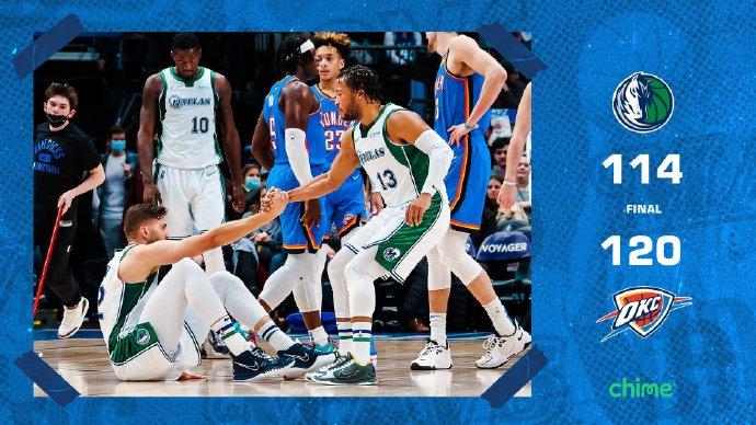 直播车2月3日讯 NBA常规赛,独行侠主场迎战雷霆,此役雷霆核心亚历山大和独行侠大将波尔津吉斯均作壁上观。首节东契奇手感火热,一人里突外投无所不能,然而雷霆却靠着基迪、多特和维金斯的三分雨取得领先,次节雷霆替补进攻哑火,独行侠趁机打出一波7-0反超比分,好在基迪、多特等主力回归后雷霆重回正轨,半场结束前顽强的将比分追平。第三节两队展开三分对飚大战,独行侠这边虽然火力不弱,奈何对面三分超神,曼恩、多特等人单节飚中七记三分为球队取得了9分的优势,末节布伦森及时挺身而出,他以一己之力带队打出11-1的反击缩小比分,怎料之后他们却陷入4分多钟的得分荒错失追分良机,好在东契奇之后大发神威带队反超比分,雷霆则靠着威廉姆斯的空接将比赛拖入加时。加时赛多特一人连得14分打了对手一个措手不及,东契奇则未能延续末节的手感,只能眼睁睁看着分差被拉开,最终雷霆120-114击败独行侠。