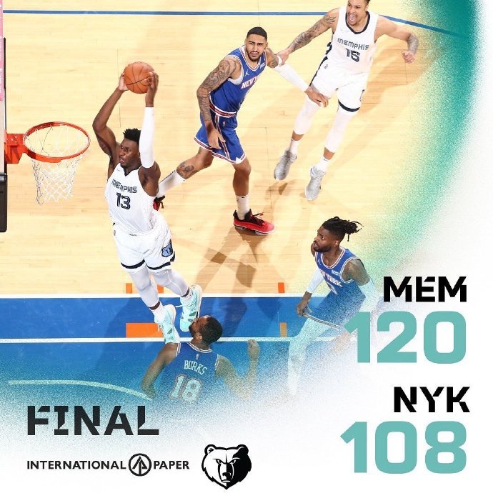 直播车2月3日讯 NBA常规赛,尼克斯今日迎战灰熊,前者上场比赛大胜国王排名东部第十一位,后者则是惜败76人暂列西部第三位。比赛上来灰熊就率先进入状态取得领先,虽然尼克斯及时调整将比分追至11-11平,但在首节末段灰熊还是将分差拉开到了两位数,之后的比赛尼克斯一直处于落后,半场结束时灰熊领先12分。易边再战,尼克斯虽然多次发起反扑,分差也是回到个位数,但始终没能获得反超的机会,兰德尔更是在最后时刻吃到个人第二次技犯被驱逐,最终灰熊轻取尼克斯避免连败。