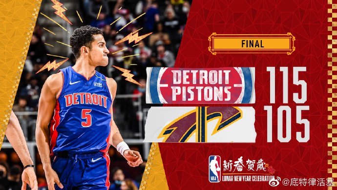 直播车1月31日讯 NBA常规赛继续进行,北京时间今日除夕,活塞主场迎战骑士,活塞本赛季以练兵为主,目前4连败排在东部第14位;骑士则是继续高歌猛进,一波3连胜升至东部第4位。开局骑士反客为主迅速进入状态,打出15-0梦幻开局,但后半节弗兰克-杰克逊站出来连续在外线发炮帮助活塞回应小高潮追到差5分,次节双方展开拉锯战,活塞依靠年轻冲劲一直咬住比分,但加兰德找到外线手感接连3记三分帮助骑士守住6分领先。第三节,骑士内线进攻继续施压,几度领先到双位数,但贝站出来也能连续冲击内线帮助活塞咬住4分分差,末节双方命中率都有下降,骑士突然陷入得分荒,活塞抓住机会打出13-0攻击波反超比分,随后骑士还是连续攻不进,活塞打出气势反超到双位数,最终活塞逆转骑士,终止4连败的同时也终结对手3连胜。