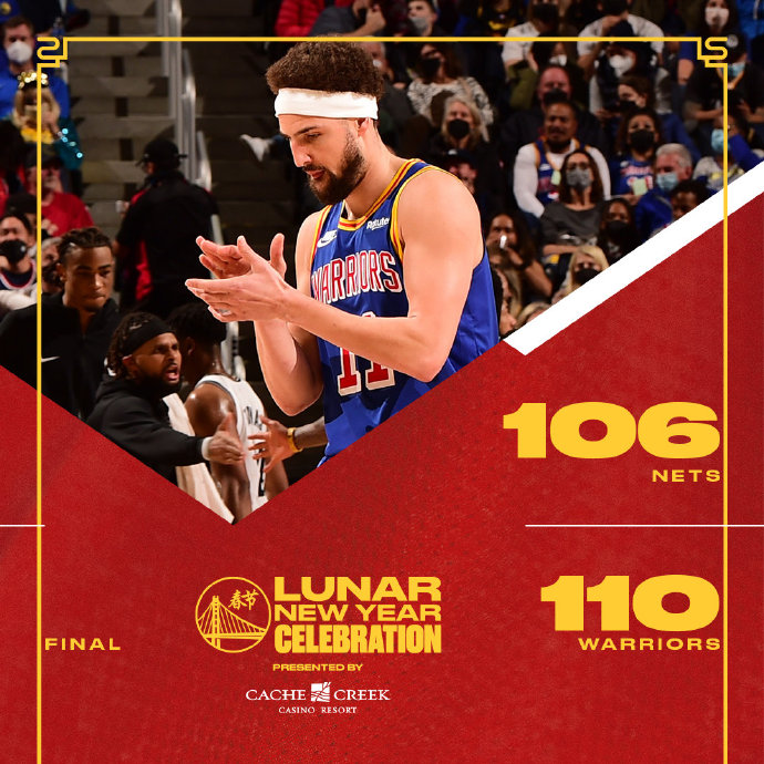 直播车1月30日讯 NBA常规赛,勇士今日对阵篮网,前者四连胜后排在西部第二位,后者则是遭遇三连败下滑至东部第五位,本场杜兰特和哈登均缺战。比赛上来篮网率先进入状态取得领先,不过勇士在调整后及时找回手感,尤其是维金斯连续得分帮助球队实现反超并建立起两位数的领先优势,次节凭借着米尔斯的出色发挥篮网一度实现反超,但勇士随后打出一波11-0的小高潮稳住局势,半场结束时篮网落后7分。易边再战,勇士火热的手感一度将分差拉开到了19分,但是欧文的突然爆发还是帮助篮网将比分追了回来,比赛悬念一直保持到了最后,关键时刻欧文发球前出现犯规,水花兄弟的罚球没有再给对手机会,最终勇士力克篮网,迎来五连胜的同时也送给后者四连败。
