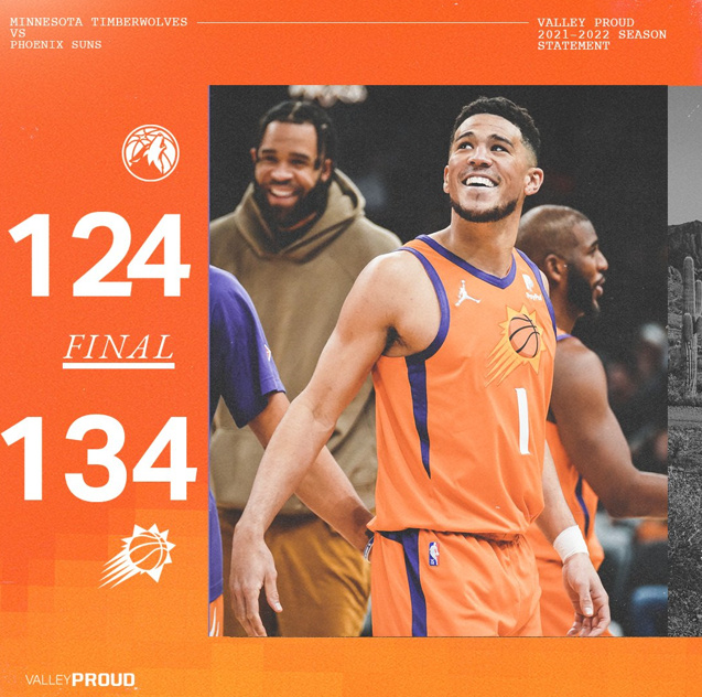 太阳(39-9):布克29分3篮板9助攻,保罗21分10篮板14助攻,布里奇斯18分5篮板2助攻,约翰逊23分5篮板4助攻,比永博14分12篮板,沙梅特17分4篮板5助攻,史密斯10分4篮板。