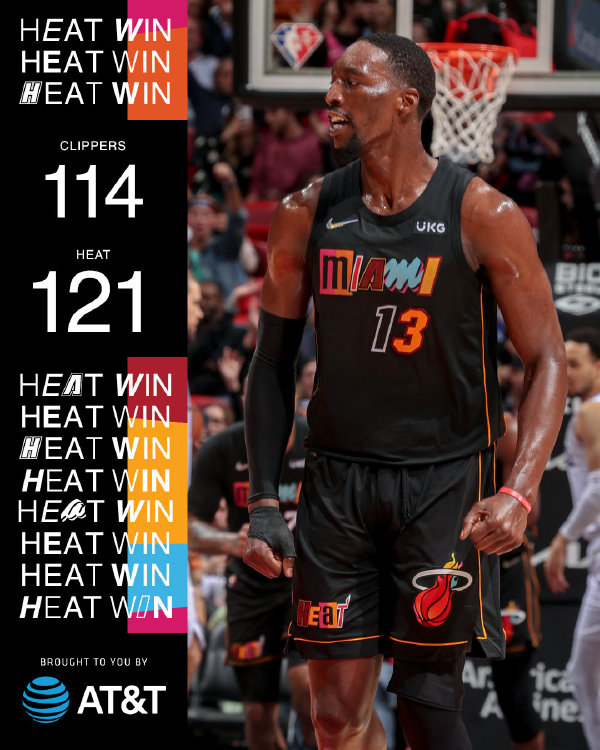 热火(32-17):巴特勒26分6板9助3断,阿德巴约20分12板4助,塔克18分5板2助2断,文森特23分4板3助,邓罗16分2板2助,希罗11分4板4助,斯特鲁斯5分4板,戴德蒙2分7板