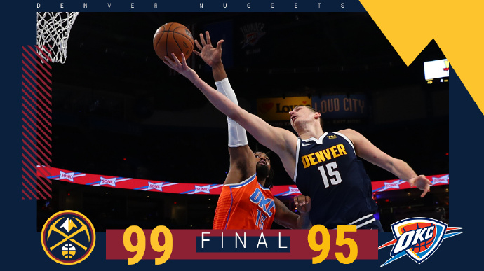 直播车1月10日讯 NBA常规赛,掘金客场挑战雷霆。击败国王后掘金止住连败,战绩紧咬湖人排在西部第7位。雷霆则是遭遇了3连败,目前只领先火箭排在西部倒数第2名。一开场,掘金迅速进入状态,雷霆则全队梦游,掘金22-4大比分领先。随后雷霆逐渐回暖,首节结束掘金领先13分。次节比赛,两队围绕着10分左右的分差展开激烈争夺,里弗斯独中三记三分,雷霆强攻内线频频得手,半场战罢掘金61-49领先12分。易边再战,掘金命中率下滑,雷霆趁势反击,多特和基迪联手发力帮助雷霆一度反超比分。里弗斯再中三分,三节打完掘金只领先2分。第四节,雷霆持续发力打成10-1的攻击波一度反超5分,里弗斯挺身而出连得5分,巴顿罚球杀死比赛。