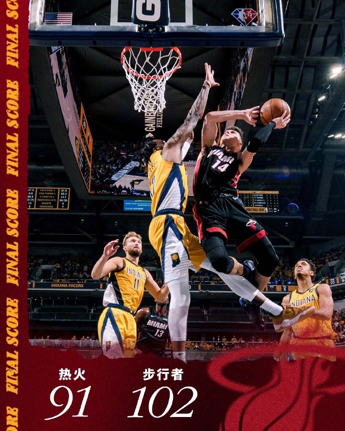 热火(1-1):巴特勒19分6板6助,希罗30分10板,阿德巴约17分16板3助,邓罗14分5板,文森特2分3板3助,莫里斯4分,斯特鲁斯5分4板