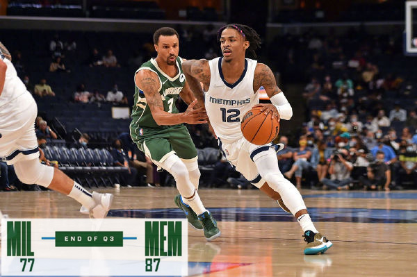 直播车10月6日讯 NBA季前赛,卫冕冠军雄鹿客场迎战灰熊,雄鹿字母哥、米德尔顿和霍勒迪三巨头此役均高挂免战牌。首节灰熊在莫兰特的带领下火力全开,开局一波11-0后便牢牢占据场上主动,次节雄鹿有所复苏,大洛和诺瓦一内一外保住了球队的基本盘,灰熊除了莫兰特外手感均有所下降,好在之前领先较多,他们也带着8分的优势结束上半场。下半场阿伦连得8分一度帮助雄鹿追至只差2分,无奈莫兰特个人能力太过突出,他单节奉献3记暴扣,配合上梅尔顿与杰克逊的出色发挥,灰熊重新稳住阵脚,末节由于现场球馆报警器的问题,比赛临时取消。