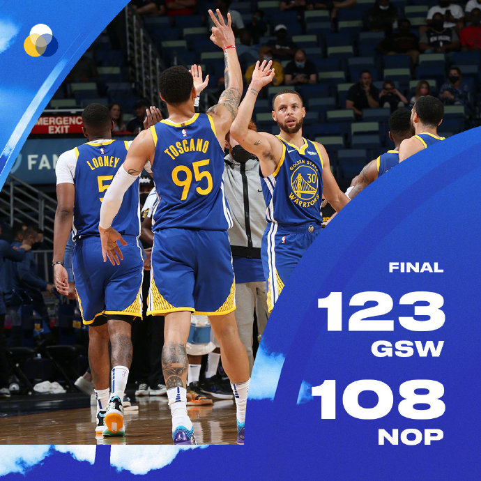 直播车5月4日讯 鹈鹕今日坐镇主场迎来勇士的挑战,勇士凭借上一场大胜火箭的胜利及时止住颓势并继续追赶季后赛末班车,鹈鹕目前无欲无求不过近期4战3胜表现相当不错。首节之争勇士多点开花用一波12-1的攻势拿到完美开局,节中面对鹈鹕的追赶,“库三节”的主导者将火热手感提前至首节,库里这一节轰下17分,勇士节末再送18-7的攻势确立起18分领先,次节勇士仍然主导比赛,次节打完11分钟的时候仍然手握20分的领先,不过鹈鹕最后时刻自我救赎,他们依靠一波8-0的攻势将分差缩小至12分进入下半场。休息归来面对鹈鹕的反扑,“库三节”从不迟到,库里这一节再度轰下15分并送出3次助攻,勇士从优势一度被缩小至6分的情况下重新拉开两位数领先牢牢控制比赛。末节维金斯站出来连拿8分为勇士奠定一个好头,勇士稳守巨大领先没有给鹈鹕任何机会。最终,勇士客场大胜鹈鹕拿下比赛。