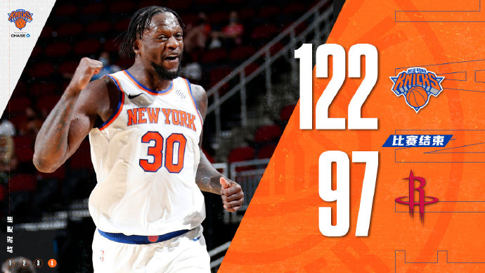 直播车5月3日讯 NBA常规赛,火箭主场迎战尼克斯。火箭被库里单节发力击败后,近7场输掉其中6场,球队也是继续稳居联盟垫底。而尼克斯最近状态不错,高居东部第四,过去11场比赛赢得了其中的10场。一开场,火箭多点开花取得领先,尼克斯在兰德尔的带领下奋力反击,连续打出进攻高潮反超比分,首节结束尼克斯领先10分。第二节,尼克斯延续火力继续拉开分差,奥利尼克里突外投带队苦苦追赶,半场打完尼克斯59-44领先15分。下半场,火箭持续发力一度把分差缩小到个位数,兰德尔单节15分帮助尼克斯领先22分结束第三节。第四节,尼克斯不断发力继续扩大优势,分差超过30分,比赛早早失去悬念。最终,尼克斯击败火箭,客场带走胜利。