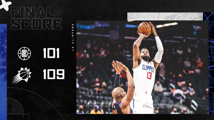 快船(43-21):乔治25分10篮板4助攻3断,莫里斯16分4篮板,祖巴茨14分7篮板3助攻,曼恩12分6篮板2断,雷吉-杰克逊10分2篮板4助攻,隆多9分7助攻4篮板2断,巴图姆8分,肯纳德5分,帕特森2分2篮板。