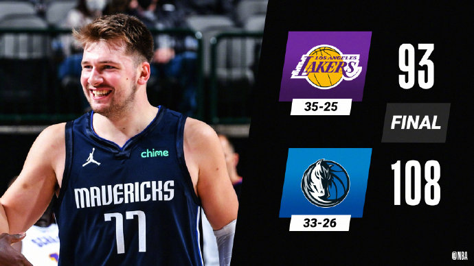 独行侠(33-26):东契奇18分8篮板13助攻,鲍威尔25分9篮板,芬尼-史密斯21分7篮板,哈达威8分4篮板,克莱伯9分10篮板5助攻,斯坦8分2篮板,梅利6分5篮板,布伦森5分5篮板3助攻。