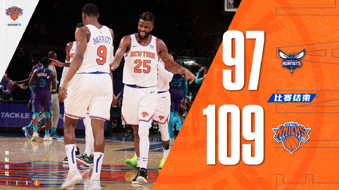 直播车4月21日讯 尼克斯今日坐镇主场迎来黄蜂的挑战,尼克斯近期状态火热目前取得6连胜,黄蜂上一场击败开拓者结束4连败,但排名仍然跌落至东部第八。首节之争黄蜂在开局几度被动之下依靠外线的突然爆发扭转局势,首节他们命中8记三分,这其中华盛顿三分球5投全中爆砍17分,黄蜂一度落后9分的情况下反超3分结束第一节。次节之争两队交替拿分,尼克斯新秀奎克利同样单节拿下17分,但黄蜂众将合力并在节末连中三记三分守住6分优势进入下半场。第三节易边再战仍然有球员迎来爆发,上半场8投1中仅得3分的巴雷特在这一节爆发,他在这一节轰进4记三分独砍18分,尼克斯抓住黄蜂状态回落实现反超,末节尼克斯开局不久便将优势拉大至两位数奠定胜局。最终,尼克斯主场击退黄蜂迎来7连胜。