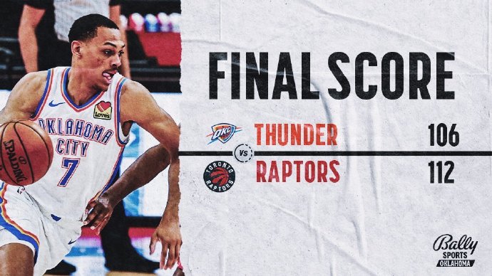 直播车4月19日讯 今日NBA常规赛,猛龙主场迎战雷霆。雷霆目前遭遇9连败排名西部13,猛龙略有回暖取得2连胜。比赛开始,雷霆小将多特首节外线手感十分出色,个人首节命中5记三分砍下21分,猛龙依靠布歇出色发挥紧咬比分,雷霆首节领先猛龙3分。次节比赛开始后,雷霆延续三分线外火热手感,特伦特本节末段发挥出色连得7分替猛龙缩小分差,半场战罢,雷霆59-52领先猛龙7分。易边再战,猛龙延续第二节末段外线出色手感,连续命中三分一度将比分反超,之后双方比分陷入胶着,三节结束时猛龙反超雷霆1分。最后一节前半段,雷霆外线发力,连中两记三分将比分反超,布歇最后时刻爆发连得10分替猛龙锁定胜局,最终猛龙112-106战胜雷霆。