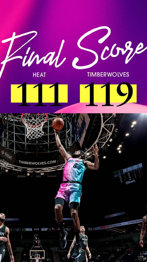 直播车4月17日讯 NBA常规赛,热火客场挑战森林狼。两支球队目前均遭遇了两连败,森林狼在缺少唐斯的情况下,森林狼两战均是大比分输球,但状元郎爱德华兹成为了新秀里首个拿到1000分的球员。热火在对阵太阳和掘金两支劲旅的比赛中毫无抵抗之力,目前已经跌到了东部第七,面对弱旅,他们急需一场胜利。本场唐斯迎来复出。一开场,巴特勒连拿9分帮助热火取得领先,森林狼连中4个三分缩小分差,热火持续发力保持优势,热火领先11分结束首节。次节比赛,热火半节仅得4分,森林狼轰出一波20-4反超5分,阿里扎连续命中三个三分个人半场得到16分,双方打成61平进入下半场。易边再战,双方打得难解难分,比分交替领先,巴特勒和德拉季奇联手拿到10分帮助热火领先5分结束第三节。末节争夺,热火状态全无,森林狼越战越勇取得两位数领先。唐斯虽然六犯离场,但热火没能挽回败局。最终,森林狼战胜热火,结束两连败的同时送给对手三连败。