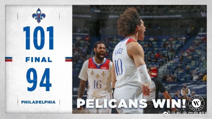 直播车4月9日讯 东部排名第2的76人今日做客新奥尔良迎战鹈鹕,目前76人落后篮网半个胜场,而鹈鹕则距离附加赛名额还有2个胜场。首节76人依靠双帝的个人能力一度取得领先,然而在官方暂停后他们的进攻却突然断电,鹈鹕众将三军用命完成反超,次节比赛依旧胶着,76人外线更准,鹈鹕则继续在内线做文章,锡安与海耶斯的二次进攻势不可挡,两队半场平分秋色。第三节鹈鹕加强了对恩比德的防守,76人的进攻彻底瘫痪,鹈鹕则在布莱德索与英格拉姆的带领下打出10-0的攻击波确立领先优势,末节锡安再接再厉连得6分将分差拉大到两位数,此后76人虽然竭力追赶并一度追至只有6分,无奈锡安关键时刻天神下凡终结比赛悬念。最终,鹈鹕主场101-94力克76人。