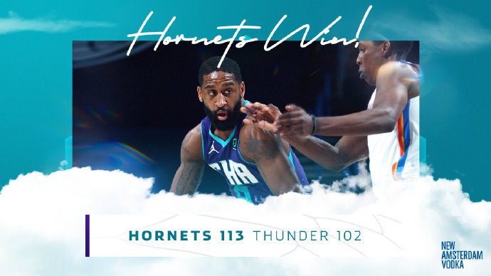 直播车4月8日讯 NBA常规赛黄蜂对阵雷霆,雷霆近来遭遇3连败,开场后黄蜂以8-0开局,不过波库舍夫斯基手感火热连中三分帮助雷霆追上比分,第二节回来雷霆更是一度反超比分,但黄蜂迅速调整状态夺回领先,上半场黄蜂56-51领先5分。下半场回来黄蜂始终牢牢压制住雷霆,虽然雷霆努力追分,但黄蜂始终保持两位数优势,最终黄蜂113-102送给雷霆4连败。