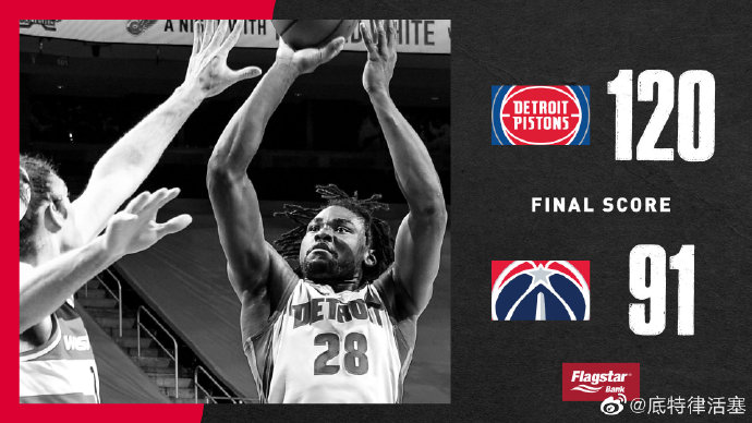 直播车4月2日讯 NBA常规赛活塞主场对阵奇才,开场后活塞率先打出攻势取得领先,约什-杰克逊逐渐展现出不错手感帮助活塞扩大领先,第二节活塞多点开花继续扩大领先,虽然威少努力追分,但奇才整体状态一般,上半场活塞87-68领先奇才。下半场回来虽然活塞手感有所回落,但奇才手感仍旧一般,第四节活塞再次打出攻势锁定胜局,最终活塞120-91大胜奇才。