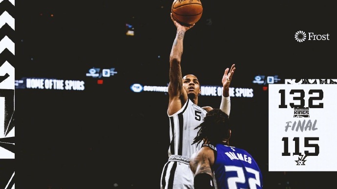 直播车3月30日讯 NBA常规赛继续进行,马刺主场对阵国王。马刺目前排在西部第七,和阿德的友好分手也帮助后者加盟了夺冠热门篮网。国王虽然仅排在西部倒数第五,但近期取得了一波四连胜。一开场,国王多点开花,马刺依靠穆雷的个人能力咬住比分,马刺凭借末段的小高潮领先4分结束首节。次节比赛,国王连续外线开炮,凭借最后两分钟的8-0在半场结束时68-60取得领先。易边再战,国王率先发力一度将分差拉开到18分,德罗赞连投带罚缩小分差,三节打完国王领先6分。末节国王在福克斯的带领下扩大领先并保持到了最后。最终,国王客场战胜马刺,取得五连胜。